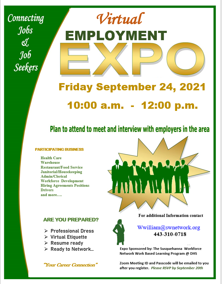 Virtual Employment Expo – 9/24/2021 – 10am-12pm (Zoom)